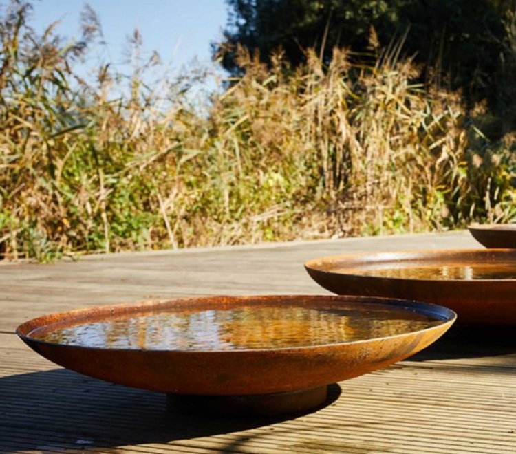 The Corten water bowl serves as a focal point in gardens, reflecting the sky and foliage to enhance spatial depth while providing a safe water source for birds and wildlife. Requiring minimal maintenance, it remains stable and reliable for long-term use, making it an ideal choice for premium residences, commercial landscapes, and public spaces.
